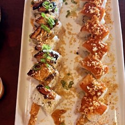 Cool little spot if you are into anime or ramen. Pictures/paintings/flags of anime characters from the show Naruto. The bbq pork ramen was way too good. Edamame hit the spot. Even their specialty sushi was very good, I tried the akatsuki roll and they were delicious. The service was great, recommend showing up a little early, it's a small restaurant and it was packed full of people. We had an hour wait just to get in.